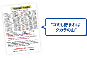レーベンスクエア東鷲宮ブライトアリーナでは、「ゴミも貯まればタカラの山」をキャッチコピーにゴミの資源化に積極的に取り組んできました。この取り組みを久喜市宮代衛生組合「ごみを減らしてきれいな街づくり表彰」の資源リサイクル推進団体部門に応募したところ、見事最優秀賞に選ばれました。2016年の買い取り総合計金額は、なんと380,540円。この金額は、長期修繕計画資金の一部として活用されるほか、マンション美化など資産価値アップにつながる資金や緊急時の修繕などの財源として活用されていく予定です。