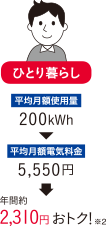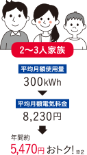 ※1 「Vプラン」と「にねんとく²割(2年間の継続申し込みで、最大24カ月間、電気料金を割引)」利用時の1〜2年目の場合を想定