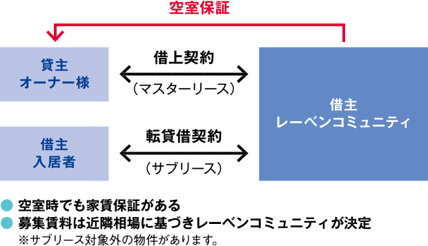 - サブリースシステムは、募集期間(免責期間)として60日の猶予をいただきます。