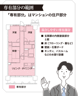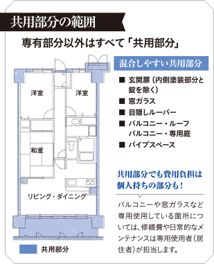 マンションに住むようになると、しばしば耳にする「専有部分」「共用部分」。