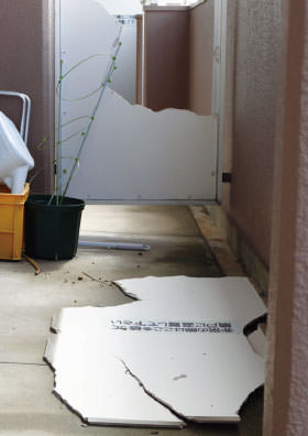 2018年の台風21号では、マンションの専有部分も被害にあい、隔て板や窓ガラスなどに被害が多く見られました。