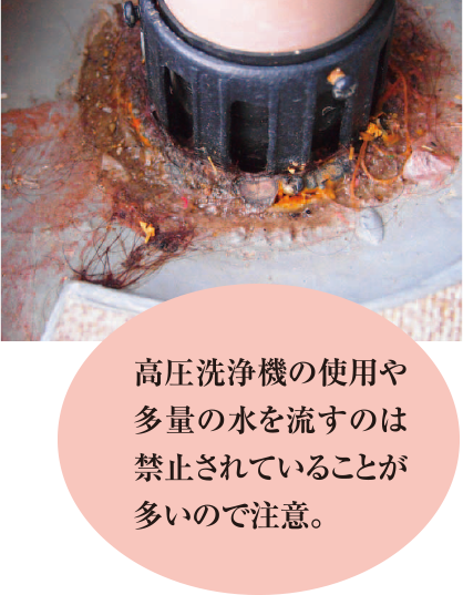 マンションが受ける台風被害で、もっとも多いもののひとつが排水口詰まりによる漏水や浸水です。排水口が詰まるとベランダが水浸しになるだけでなく、隣家や階下に甚大な被害を与えてしまうことも。台風や豪雨予報が出たら排水口の掃除を習慣づけておきましょう。