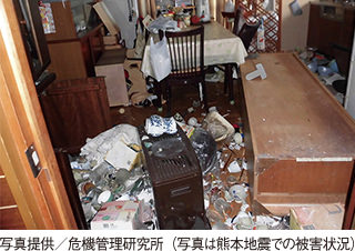 地震後、多くの人が一斉に始めるのが掃除・片付けです。掃除・片付けは、居室内に家族が安全に過ごせるエリアを作るためにも大切です。その際は、余震で再び倒れる可能性がある家具は起こさずにひと部屋にまとめ、物が落ちてこない環境を作りましょう。