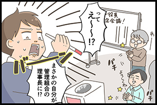 妻、娘の3人家族。都内近郊に念願のマイホームをローンで購入。理事長を決めるくじ引きでまさかの理事長に当選。